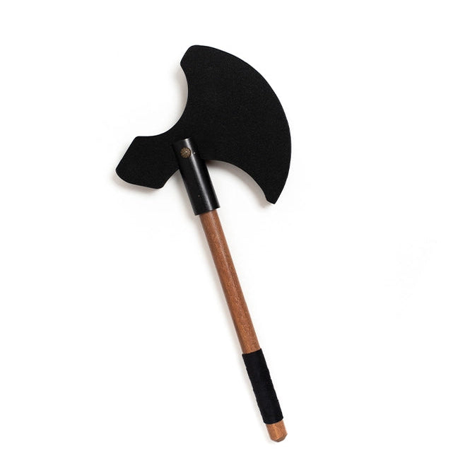 Medieval axe with wooden rod and very sturdy black foam blade. Handle covered with suede very pleasant to the touch.