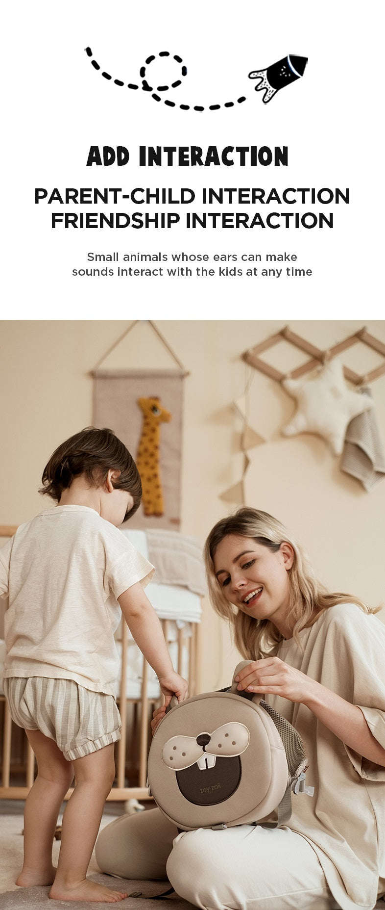 The Zoyzoii® Traction Rabbit Backpack is a children's impressive, adventurous, beautiful lightweight and elastic backpack that has many storage spaces. The child will travel with it to a vast animal farm that shines with curiosity. He will explore with his friends a densely planted forest with many bunnies. A child is enchanted by embracing every adventure of his life.