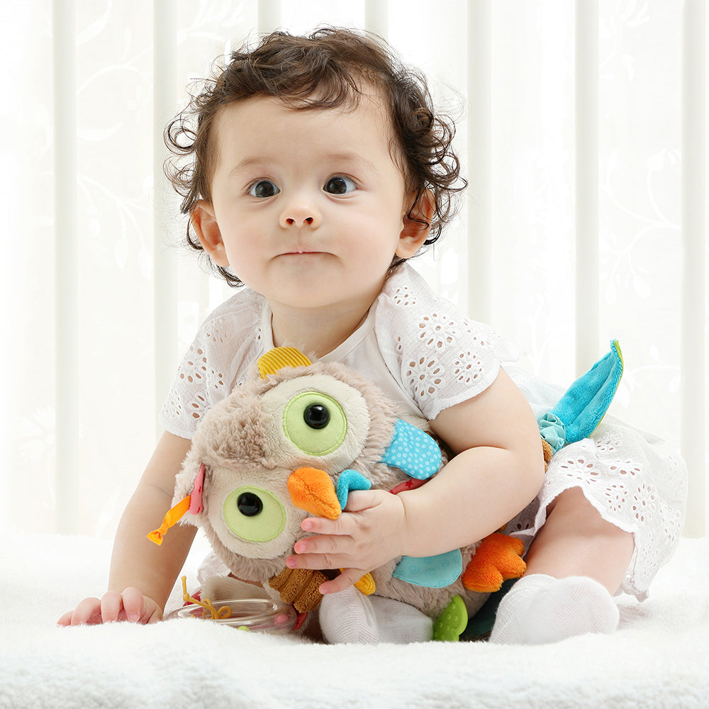 The colorful, baby toy ¨owl¨ from the Sigikid company will delight and become the best companion in the first games of our little friends. Made of soft hypoallergenic fabric, it features elements that soothe the mouth from teething pain, pieces of fabric that sound like rustling leaves and a rattle. Dimensions 20 x 14 x 11 cm.