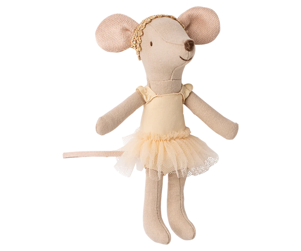 A real ballet dancer. The mouse comes in a beautiful tube with a stand inside you can use if you want to display the dancer at home.