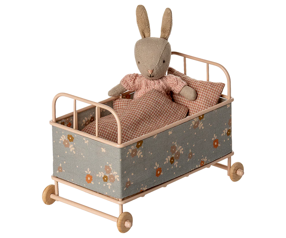 A cosy cot bed made of metal, it comes with a mattress, blanket, and pillow. It has a fabric cover to make sure the little ones can get their sleep. You can tuck in your micro sized friends as well as the small mice.