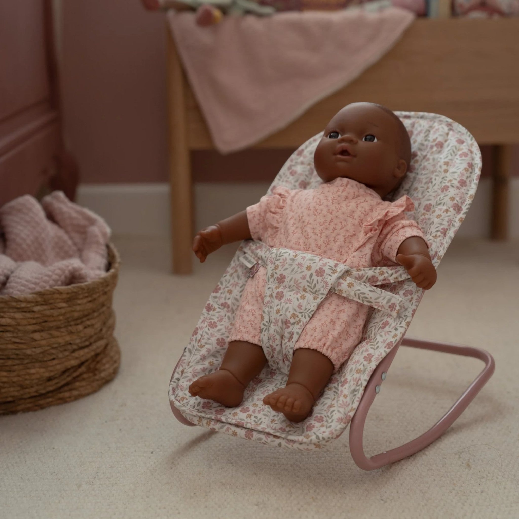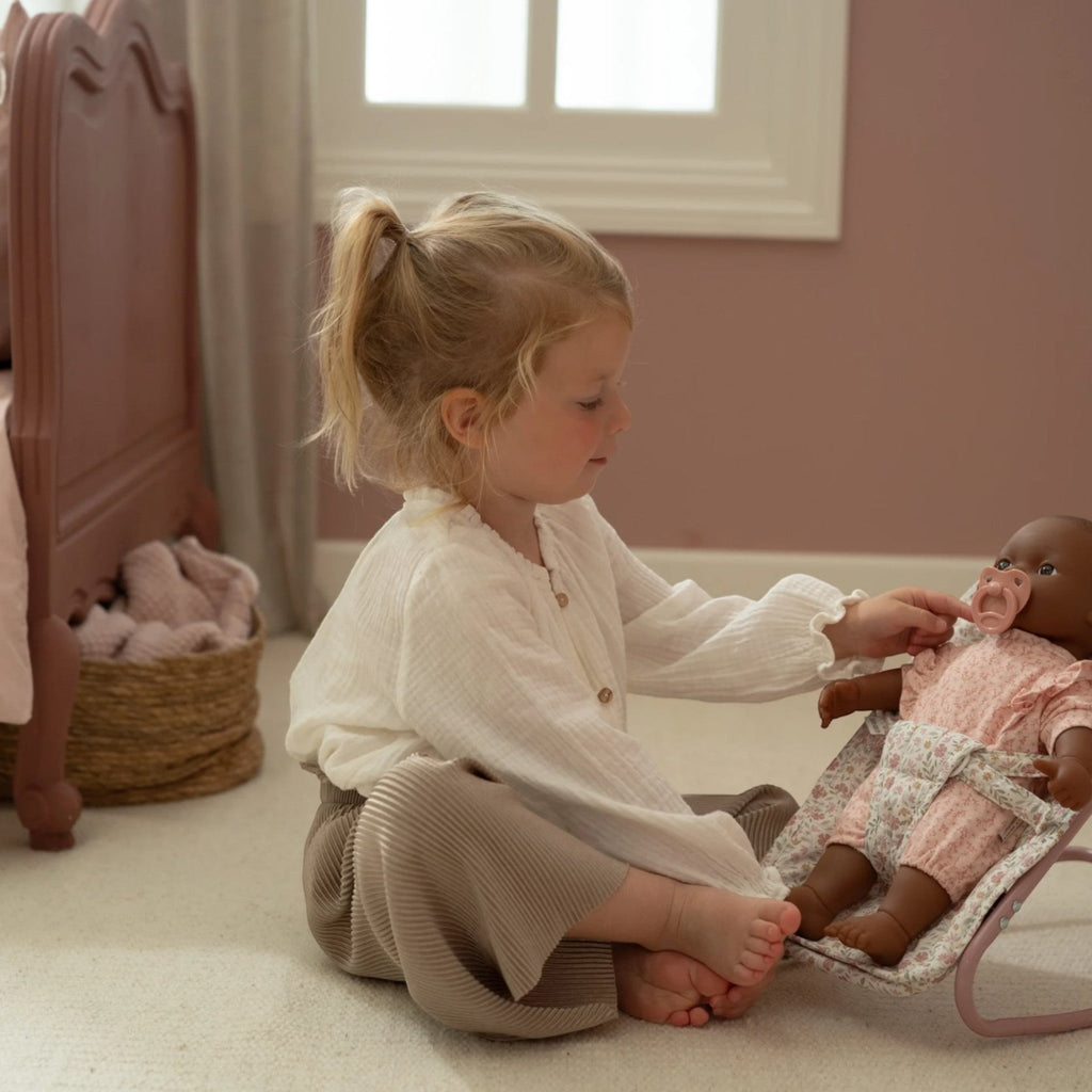 This small metal doll lounger provides a safe and comfortable place for your little doll. Lightweight and easy to use next to any play table, it's perfect for young parents who want their doll to be involved in everything.