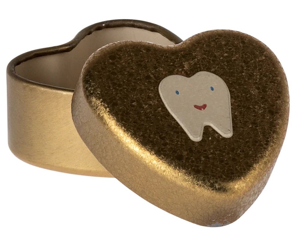 This metal heart is the perfect place to store small teeth to ensure childhood memories will last. The box has a lovely tooth embossment and special crackled surface on lid.