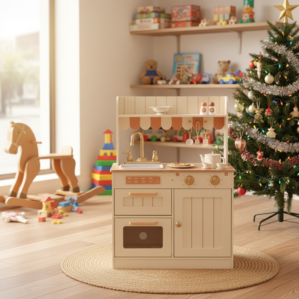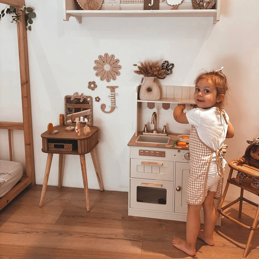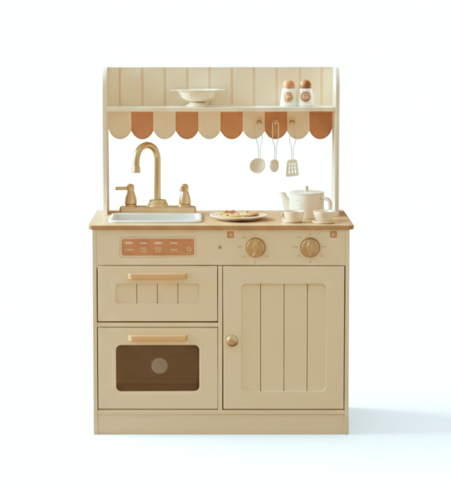 Wooden Kids’ Kitchen in Cream Color with Retro Style