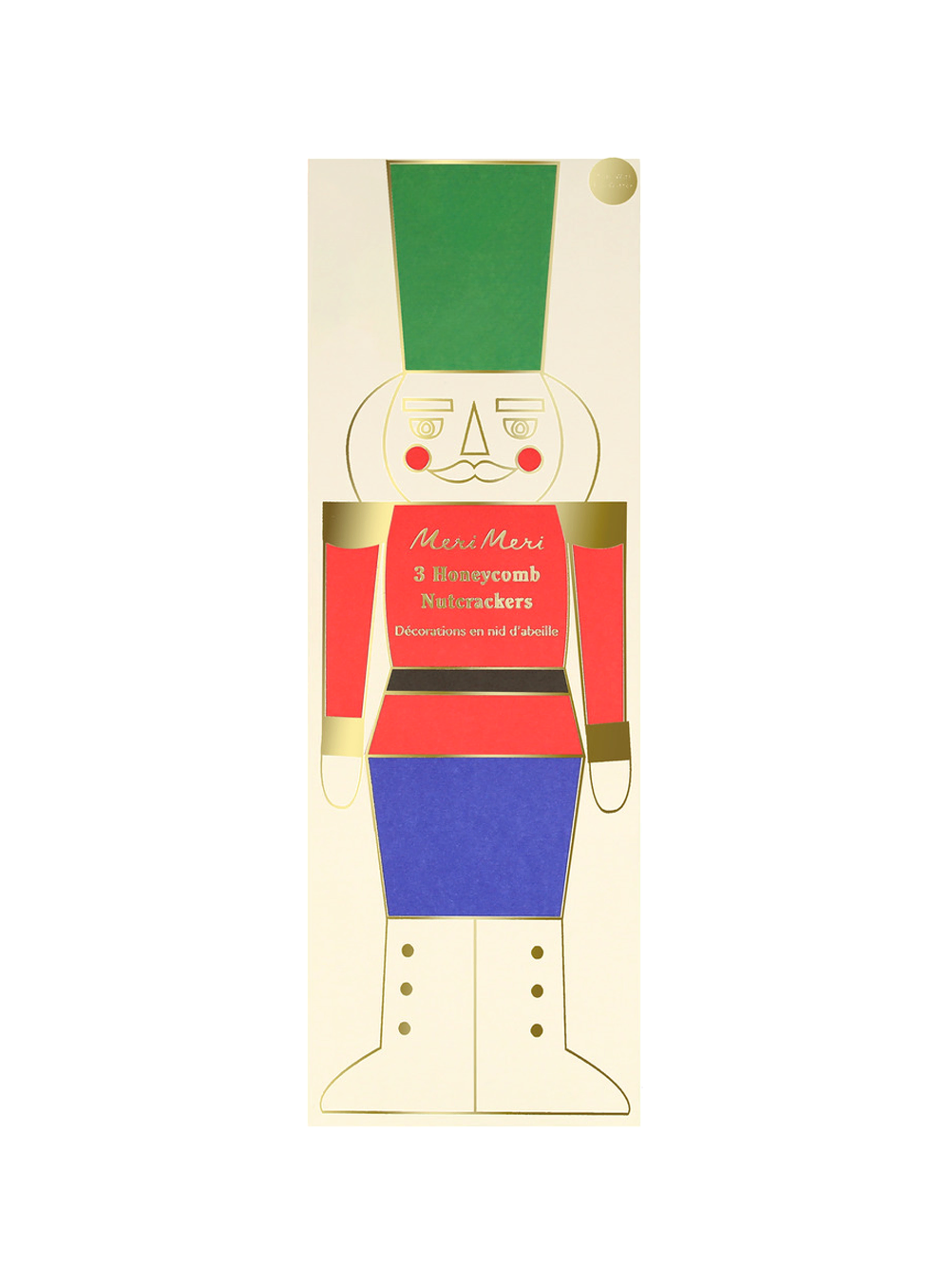 Paper honeycomb decorations in the shape of a nutcracker and 3 colors. Ideal choice for Christmas decoration of indoor and outdoor spaces to steal the show.