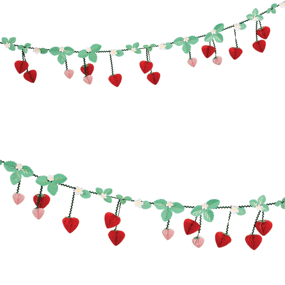 Γιρλάντα με Φράουλες, Λουλούδια και Κορδέλες Ricrac Φέρτε την ομορφιά της φύσης στην εκδήλωσή σας με αυτήν την εντυπωσιακή χάρτινη γιρλάντα με φράουλες και λουλούδια. Οι ροζ και κόκκινες φράουλες 3D συνδυάζονται με πράσινα φύλλα, λευκά και κίτρινα λουλούδια 3D και χαριτωμένες κορδέλες ricrac, για μία αίσθηση παιχνιδιάρικης κομψότητας. Ιδανική για garden parties, πικνίκ ή tennis parties, αυτή η γιρλάντα θα προσδώσει μία φρέσκια και διασκεδαστική ατμόσφαιρα στην εκδήλωσή σας. Χρησιμοποιήστε την για να διακοσμήσετε τον τοίχο, το τραπέζι ή ακόμα και την πόρτα, και αποθηκεύστε τη για να τη χρησιμοποιήσετε ξανά.