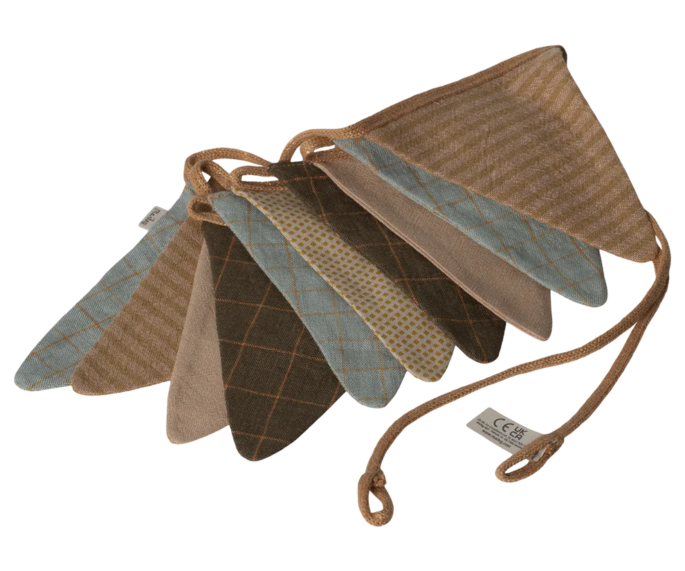 Give your home a festive look with this garland made in the most beautiful colour combination. The flags have an exclusive finish, and the garland will be decorative anywhere you place it. The garland has 10 flags, and the total length is 2,8 m.
