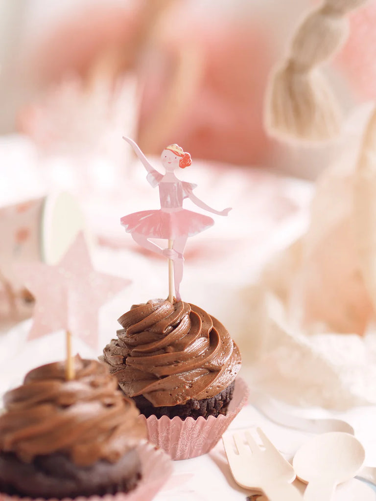 Σετ για cupcakes με θέμα την μπαλαρίνα. Ετοιμαστείτε για το θεματικό σας πάρτι και στολίστε τα cupcakes σας με αυτό το υπέροχο σετ. Ολοκληρώστε τη διακόσμηση με πιάτα, χαρτοπετσέτες, ποτήρια, διακοσμητικά κά του ιδίου θέματος. Συσκευασία: 24 θήκες και 24 toppers σε 6 σχέδια Διαστάσεις συσκευασίας: 12,7 x 12,7 x 7 εκ.