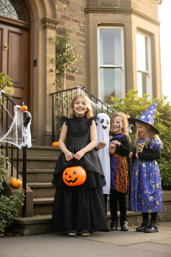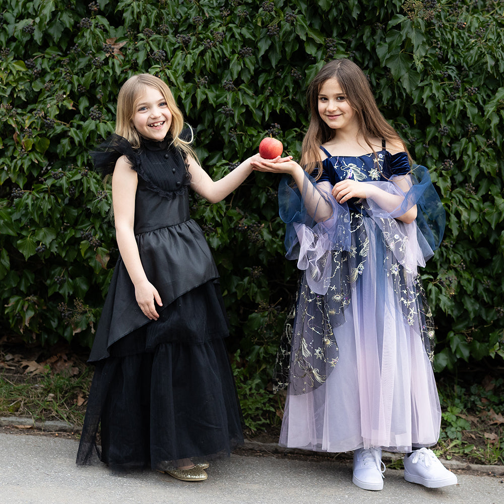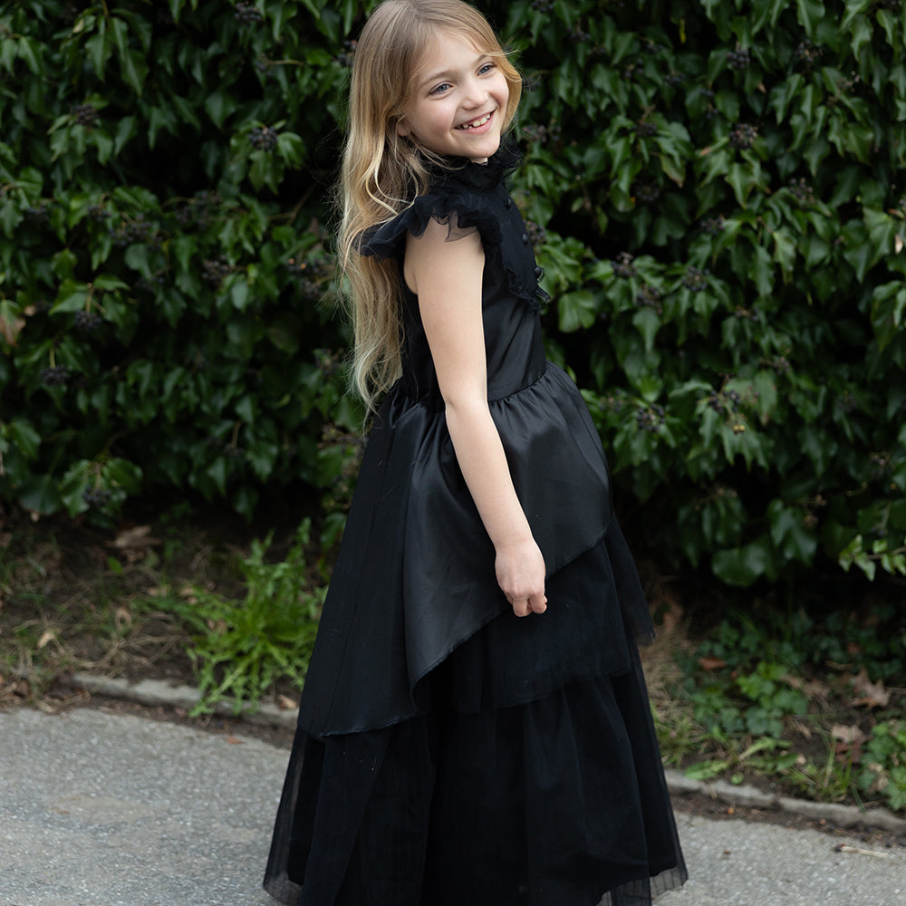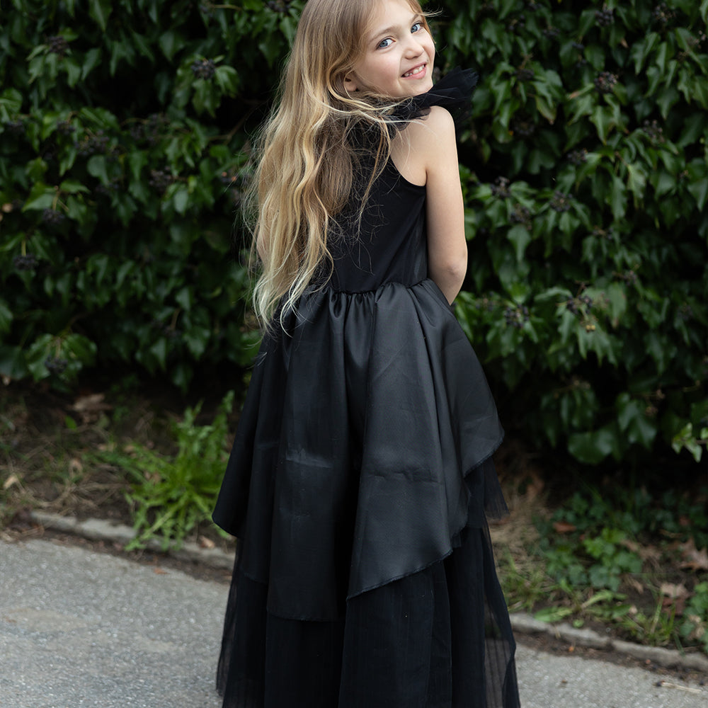 Show off your little one's mysterious style with this stunning dress from Great Pretenders. The skirt impresses with its asymmetrical cut and multi-layered tulle layers, creating rich volume and airy movement with every step. Ideal for carnival appearances, Halloween parties, theatrical performances or role play.