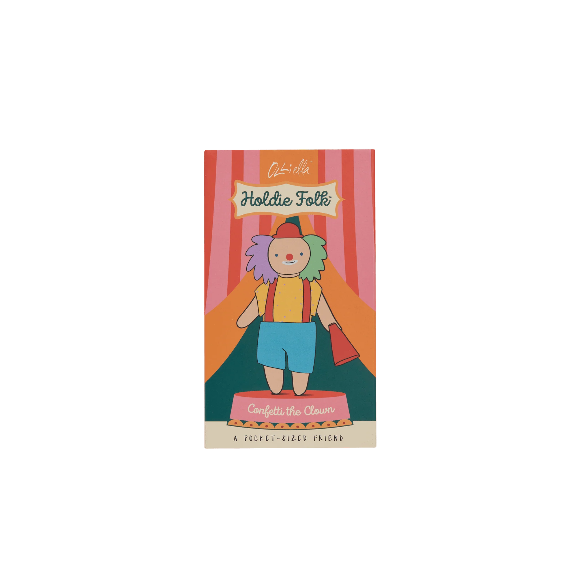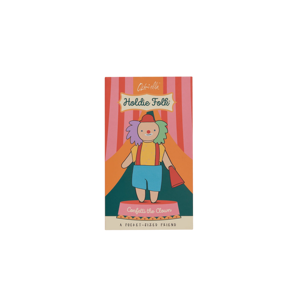 Meet Confetti the Clown, the heart and soul of the Holdie™ Circus! Whether juggling rainbow-colored balls or performing acrobatic tumbles, Confetti’s antics are bound to leave you in stitches. Confetti is more than just a clown; he is a burst of happiness that brings joy to every performance. Each Holdie Folk is posable and comes dressed in a removable outfit, perfect for imaginative play. These tiny folk are handmade, making each one unique and special.