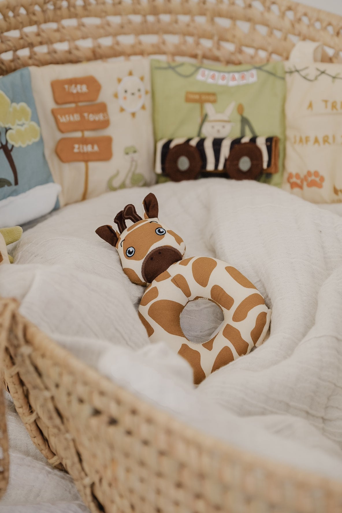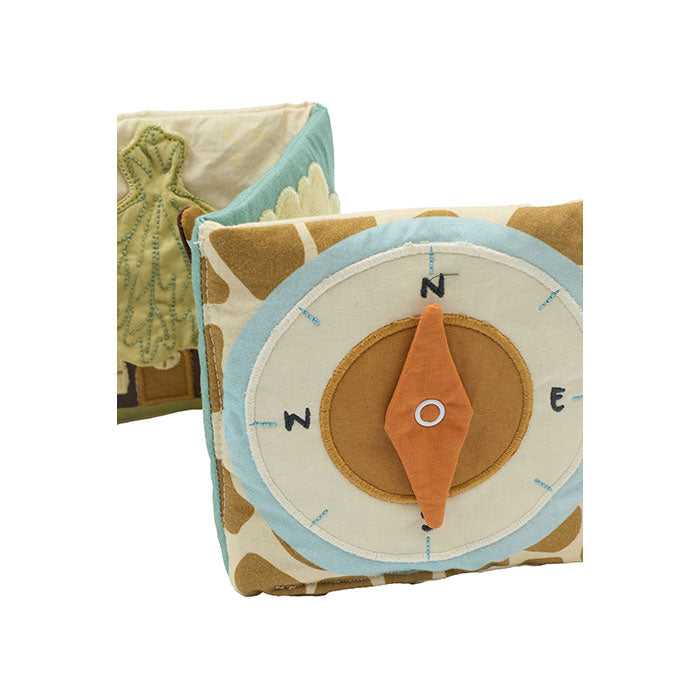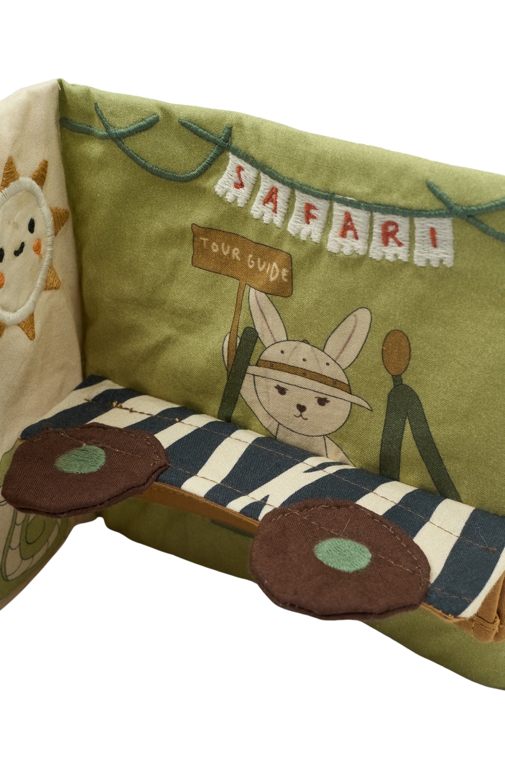 Fabelab's Fabric Book – Safari takes Bear and Bunny deep into the wild savannah. Join them as they spot towering giraffes, brazen crocodiles and roaring tigers lurking in the tall grass.
