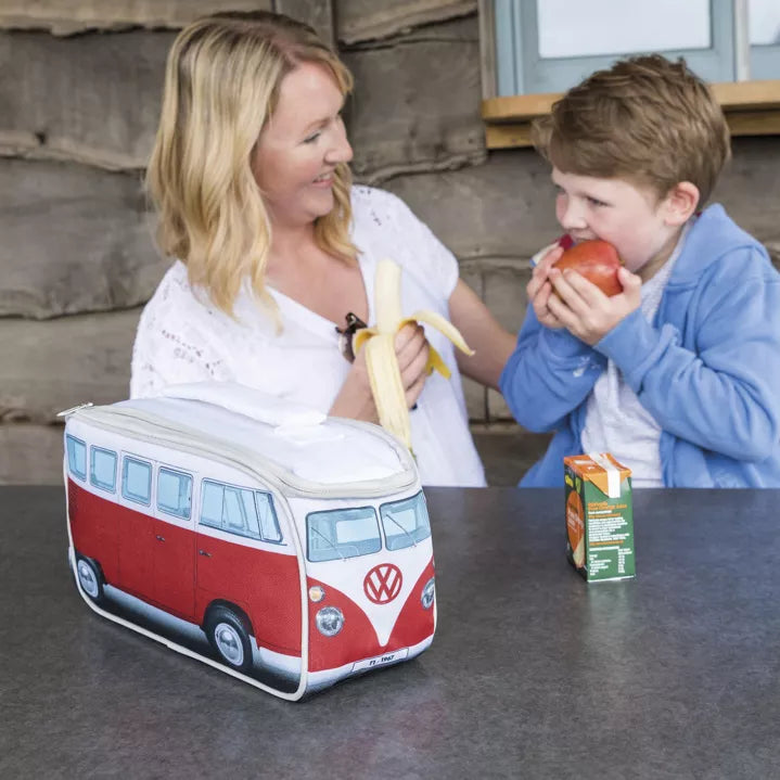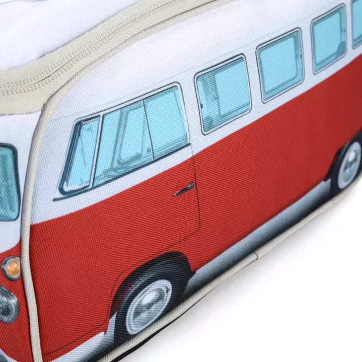 Fun lunch bag in the shape of a red VW T1 Bus. The Combi bag is easy to carry and fully insulated thanks to the handle on the top. The snack therefore stays fresh for a long time.