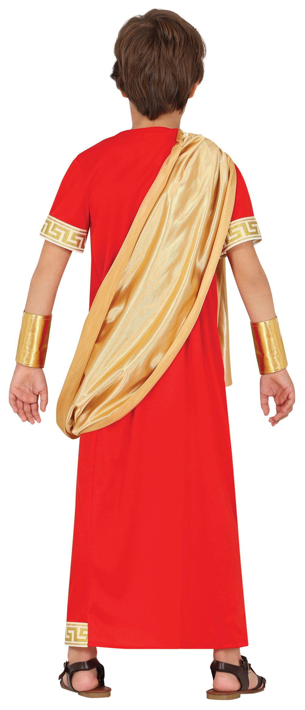 Impressive kid's Caesar costume inspired by the Roman era. Ideal for Carnival, themed parties, and school events. The costume includes a tunic and a gown.