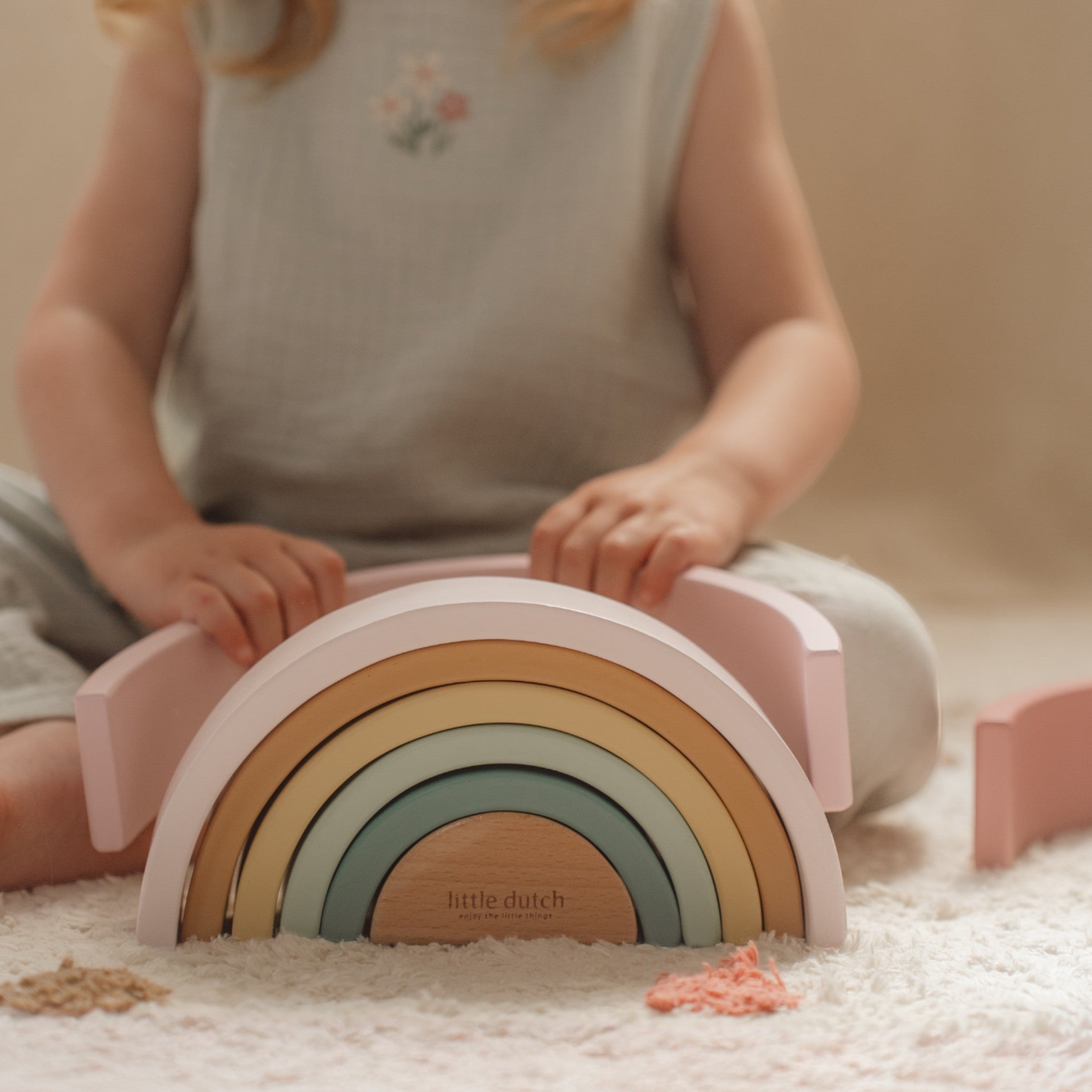 Stack, sort and create your own magical world with this gorgeous 3D rainbow in soft shades of blue, yellow and green!