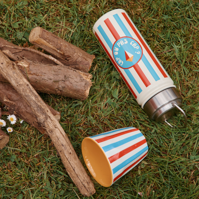 This beautiful striped water bottle will be perfect for summer or winter, keeping your favorite drink hot or cold! Thanks to its 550 ml capacity and airtight lid with handle, it is ideal for holding, and you will have enough water at your fingertips to quench your thirst.