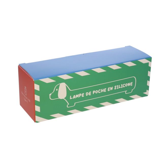 An everyday accessory that quickly becomes indispensable for those nighttime awakenings or treasure hunts. This children's dachshund flashlight is made of silicone and features a wrist strap for easy and comfortable handling.