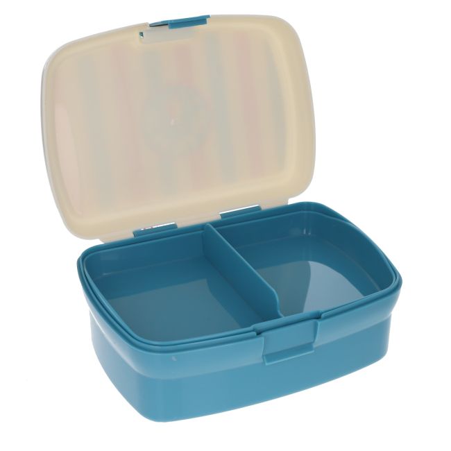This lunch box has dividers to separate food and organize your snack or meal. The practical size of this lunch box, which snaps open and closes, will delight your child.