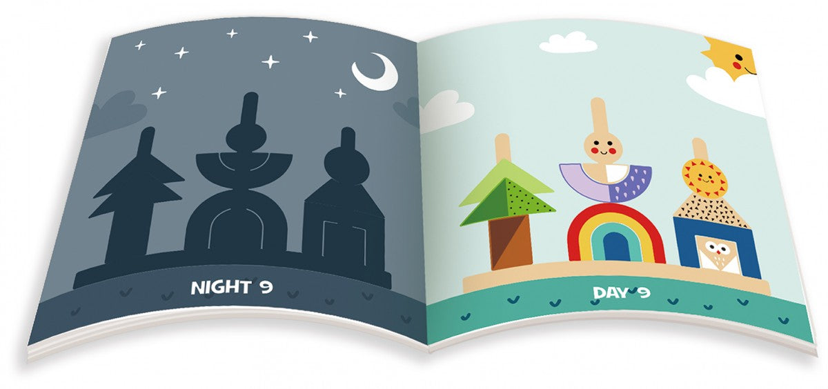 Each page of the booklet presents a pattern that the child is invited to recreate by correctly placing the pieces on the base. The level of difficulty varies: some pages show only the shadows of the shapes, while others display their colored designs. In this way, children learn to observe, compare, and choose the right shapes—and they can also create their own designs based on their imagination.