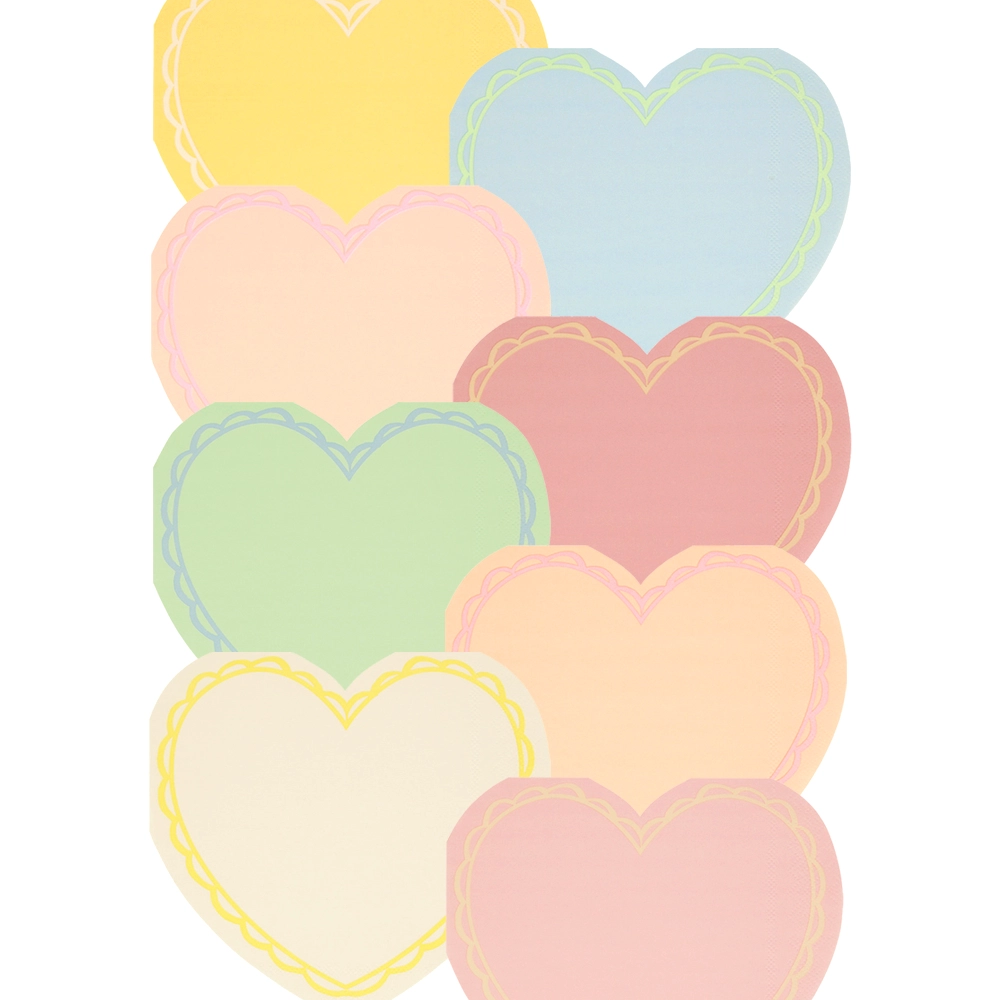 Pastel Heart Napkin Small. Pastel colored dessert napkin in a heart shape that will make your party table look unique. I