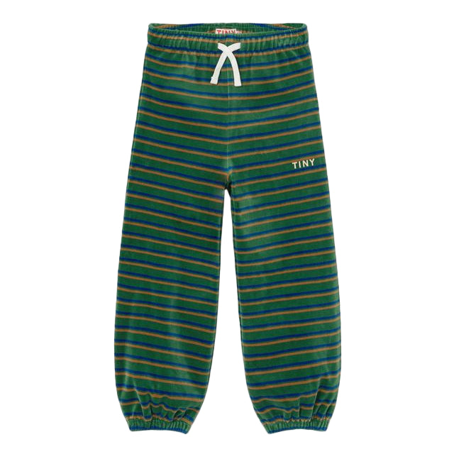 Ρίγες που δεν φεύγουν ποτέ από τη μόδα—αυτή η ριγέ φόρμα είναι κατασκευασμένη από 100% οργανικό βαμβάκι βελούδο. Διαθέτει άνετη, χαλαρή σιλουέτα με ελαστική ζώνη και στρίφωμα. Μια τέλεια επιλογή για κάθε είδους περιπέτειες.