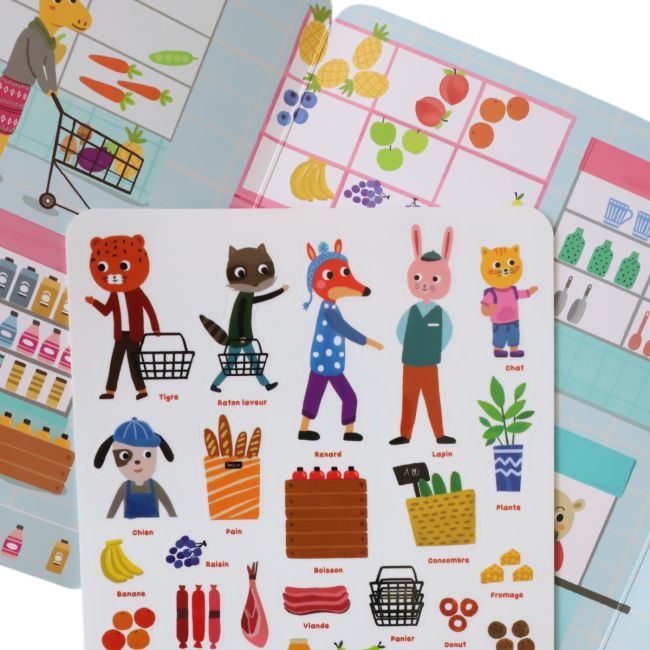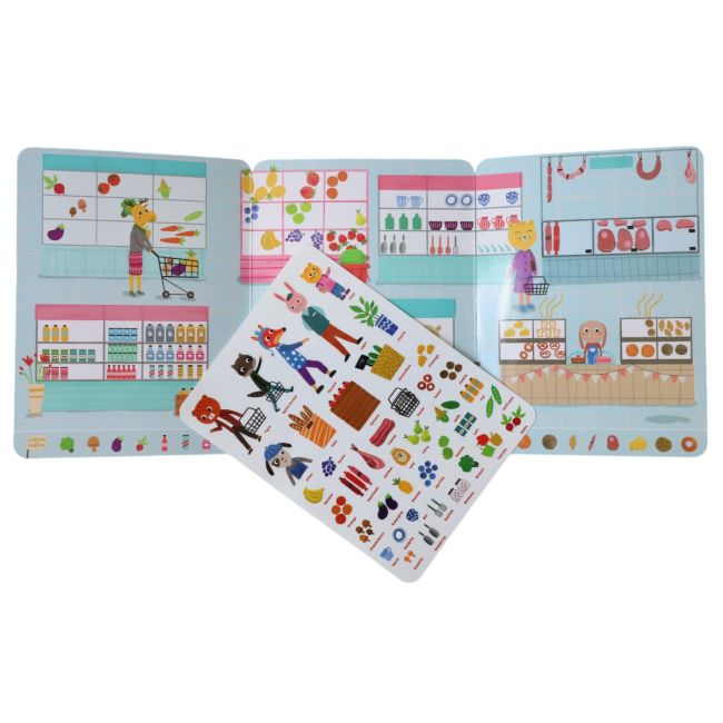 Εύκολα στο πιάσιμο και στη χρήση, τα επανατοποθετούμενα αυτοκόλλητα από σιλικόνη θα ξετρελάνουν τα μικρά παιδικά χεράκια. Από την ηλικία των 3 ετών, τα παιδιά μπορούν να ανακαλύψουν το θέμα «Η μικρή μου αγορά» και να κάνουν τα δικά τους ψώνια με τη βοήθεια των αυτοκόλλητων.