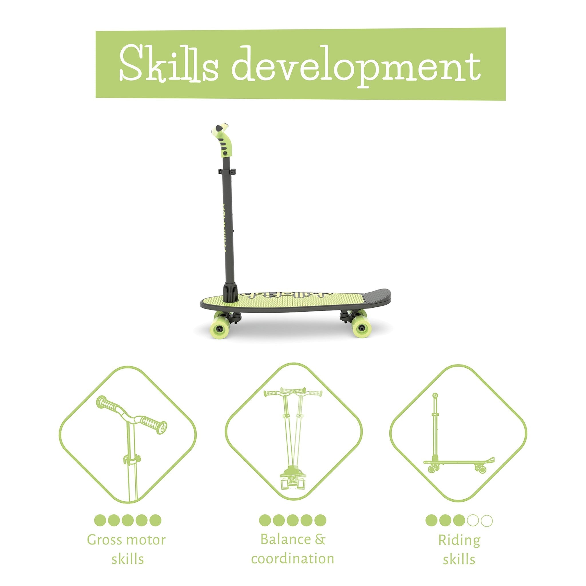 Ανακαλύψτε τη μαγεία του SkatieSkootie 2-in-1, τον απόλυτο συνδυασμό σκούτερ και σκέιτμπορντ, τέλεια σχεδιασμένο για τα πρώτα συναρπαστικά βήματα στον κόσμο του skate!
