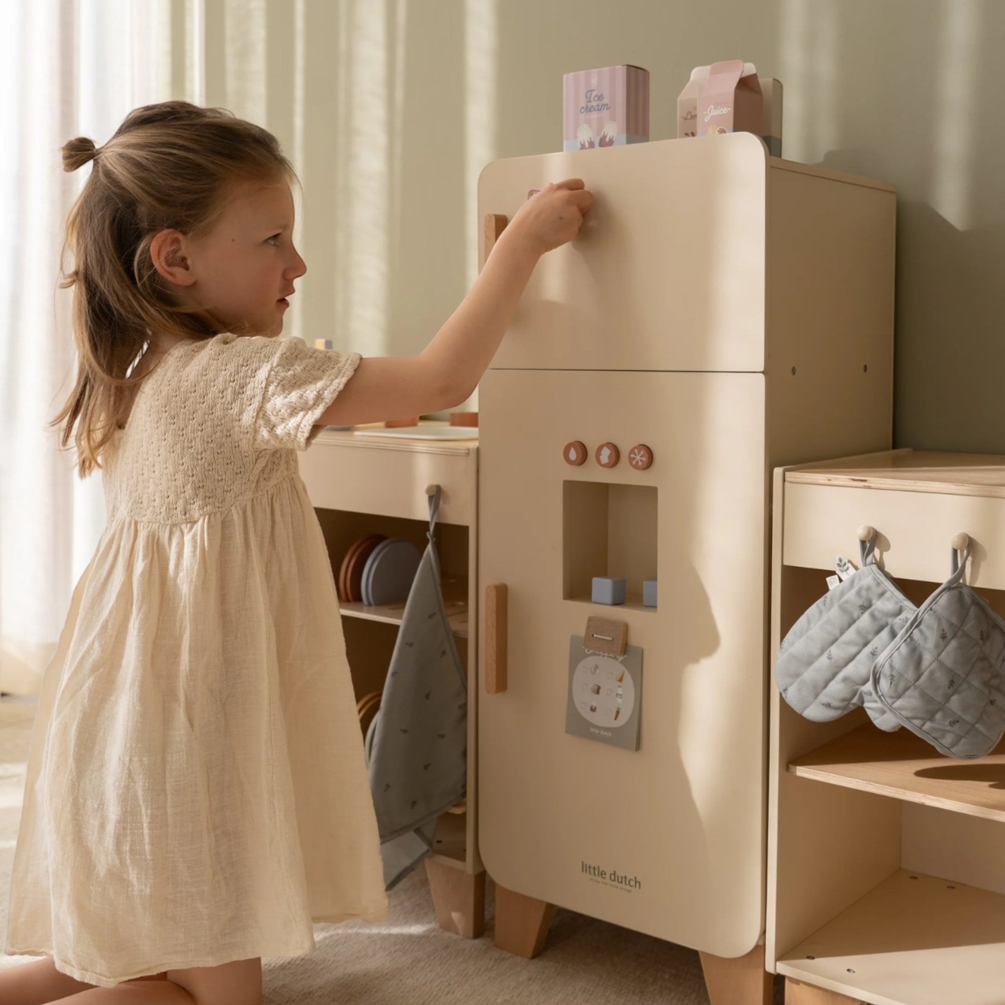 Φτιαγμένο για ατελείωτες ώρες παιχνιδιού, το ψυγείο διαθέτει πρακτικό καταψύκτη με παγομηχανή, ειδική θήκη για αυγά και αρκετό χώρο για να τακτοποιούν τα παιδιά τα ψώνια τους με τάξη.