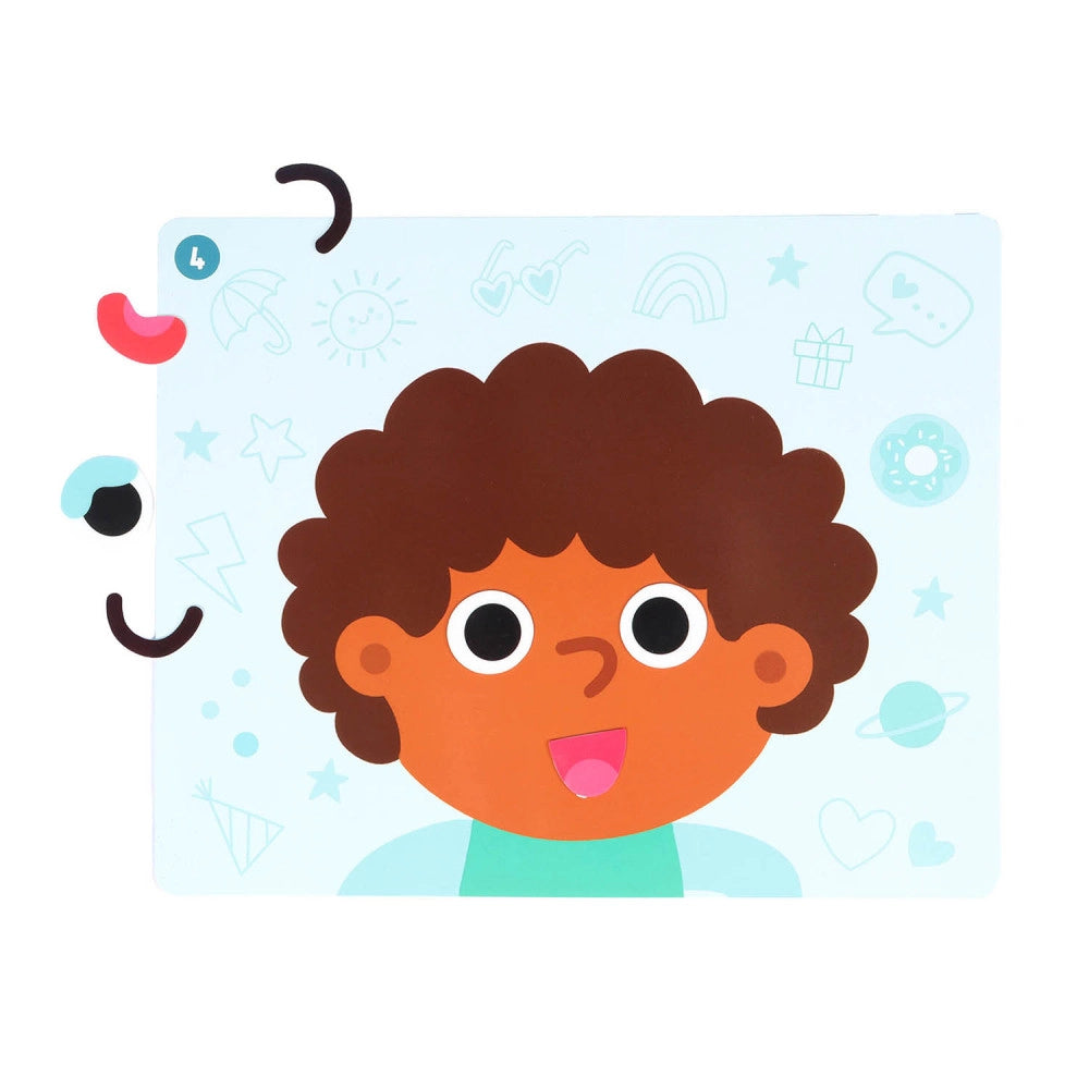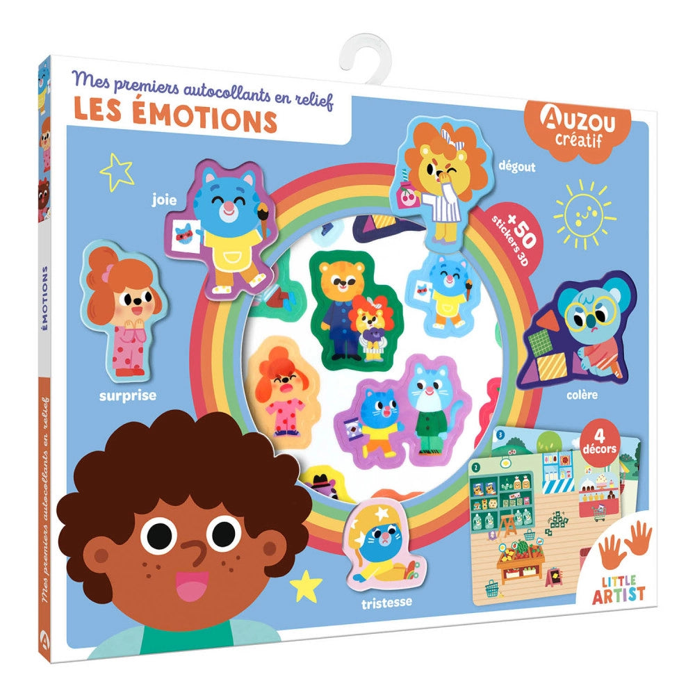 Μια διασκεδαστική δραστηριότητα που βοηθά στην εκμάθηση των συναισθημάτων! Η συσκευασία περιλαμβάνει 4 σκηνές που μπορούν να ζωντανέψουν με 50 επανατοποθετούμενα ανάγλυφα αυτοκόλλητα, ιδανικά για μικρά χεράκια. Η δραστηριότητα συνοδεύεται από έναν οδηγό συμβουλών από ειδικό, ο οποίος βοηθά τους γονείς να υποστηρίξουν την ανακάλυψη των πρώτων συναισθημάτων των παιδιών τους!
