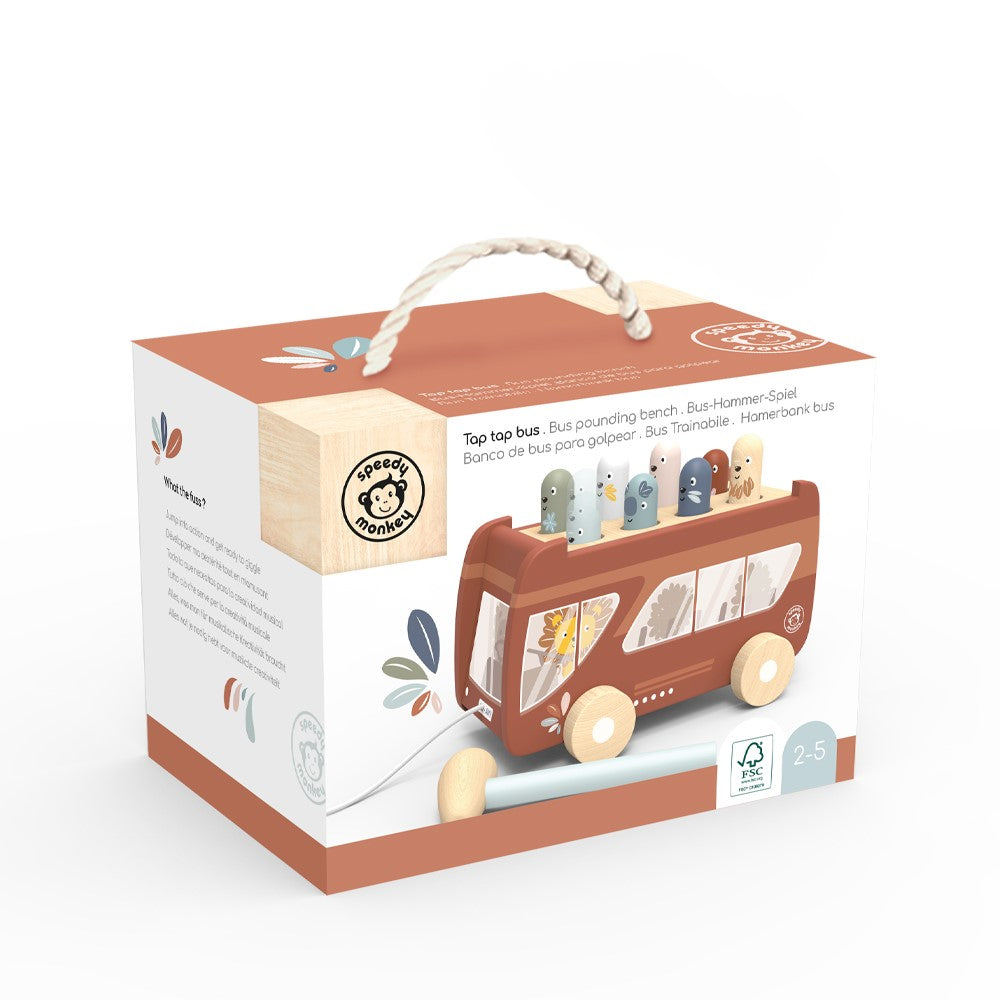 Απολαύστε αυτό το λεωφορείο που προσφέρει επίσης και την δραστηριότητα σφυρηλάτησης. Περιλαμβάνει 8 ξύλινους χαρακτήρες και ένα σφυρί, διασκεδάστε αναπτύσσοντας παράλληλα τον συντονισμό χεριών-ματιών! Αυτό το ξύλινο παιχνίδι έχει σχεδιαστεί με καμπυλωτές άκρες, είναι κατασκευασμένο από ξύλο βιώσιμης προέλευσης από πιστοποιημένα δάση FSC® και επικαλυμμένο με μη τοξική βαφή.