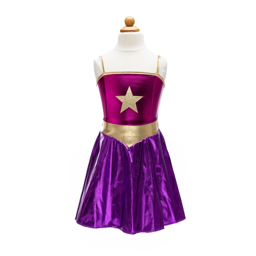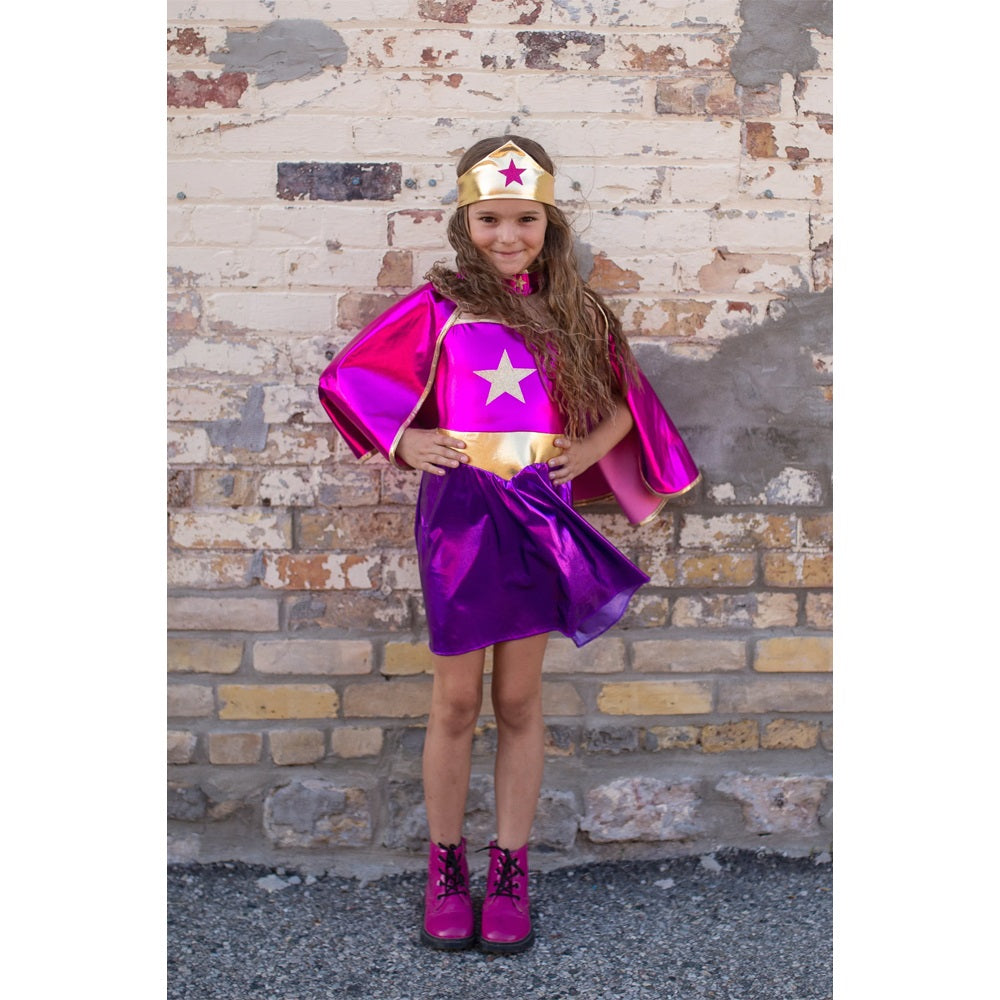 Great Pretenders Superhero Star Dress\/Cape\/Headpice, Magenta\/Purple