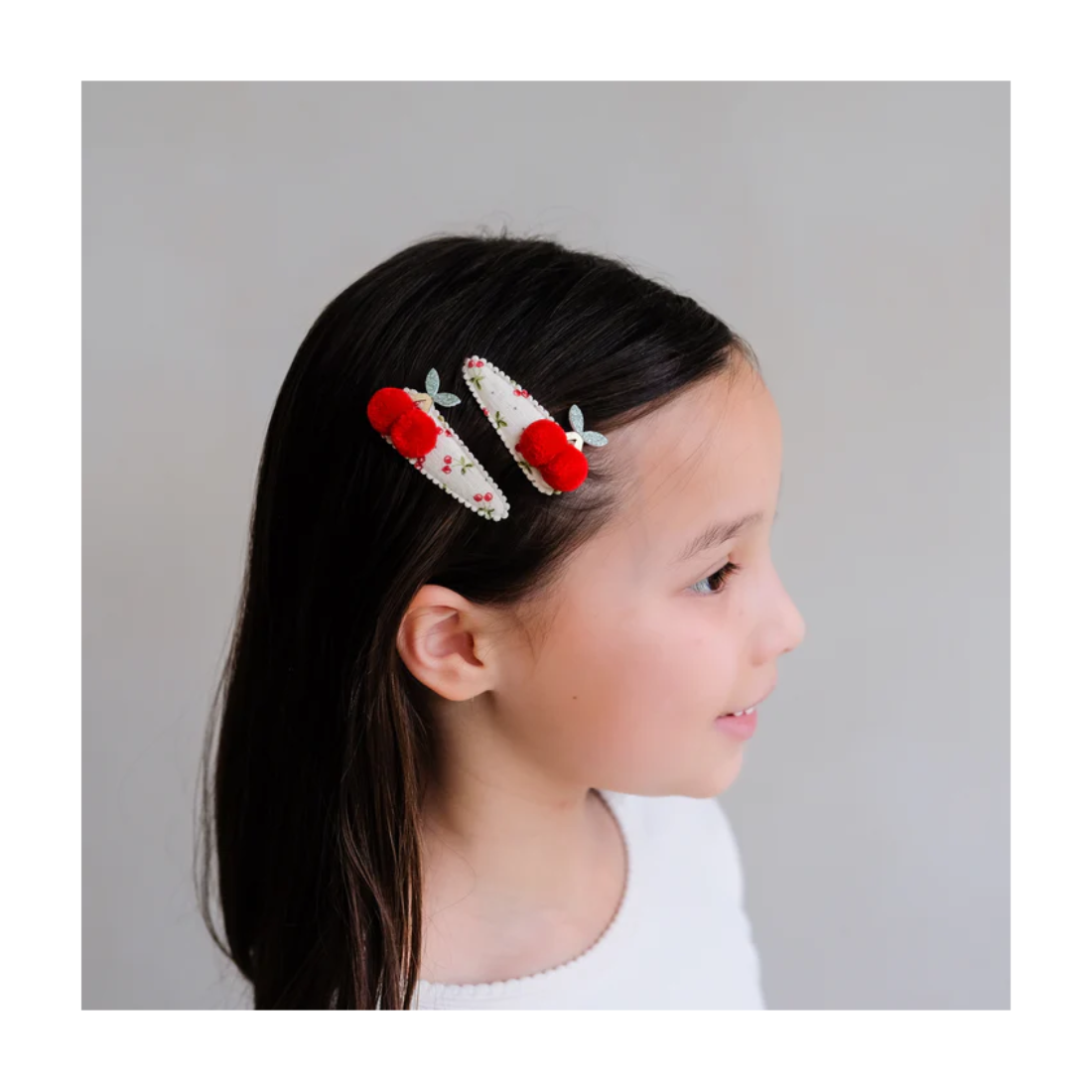 Cherry clic clacs hair clip set of 2 with pom poms 3+ years Mimi & Lula