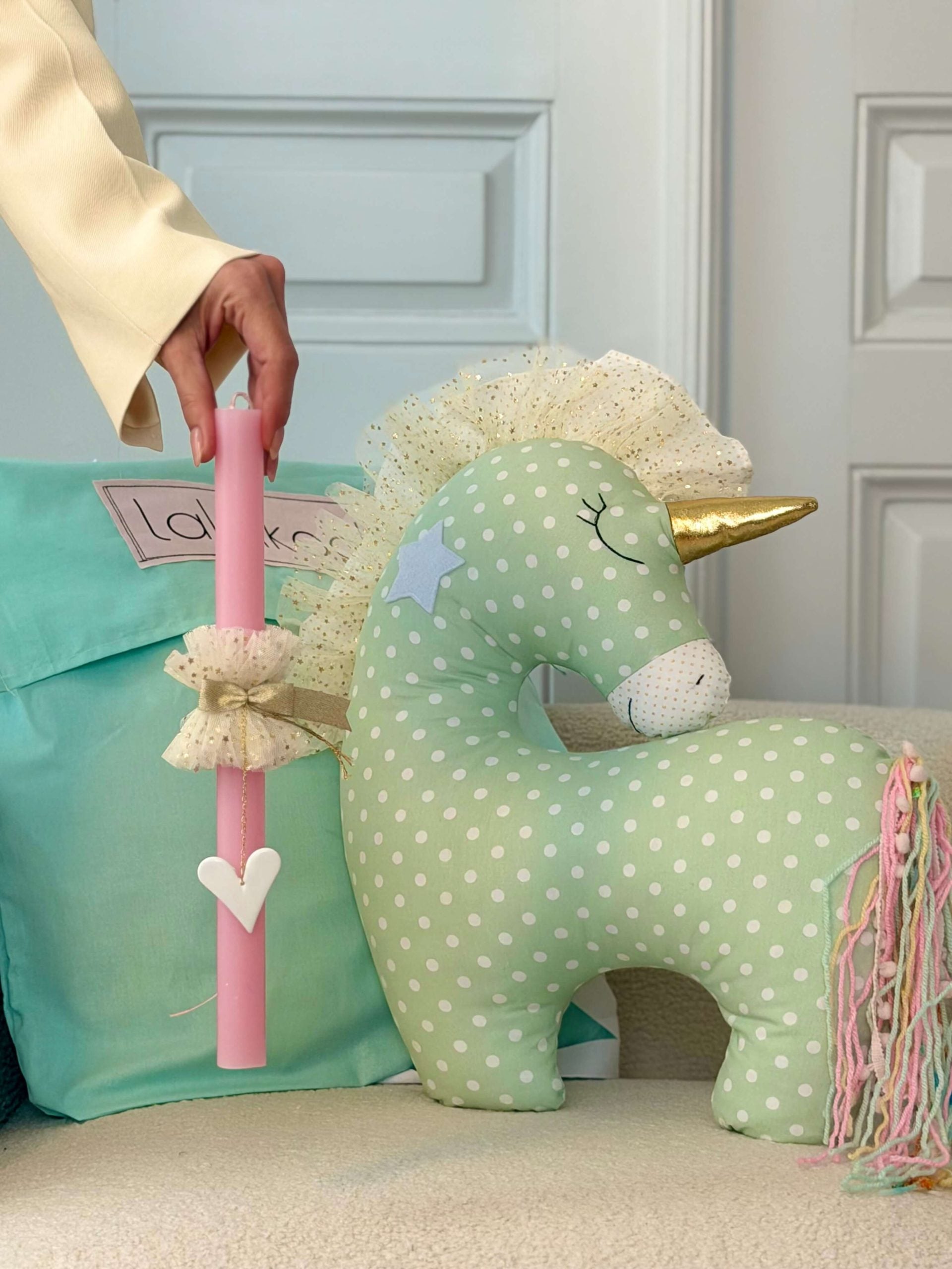 Χειροποίητη Πασχαλινή λαμπάδα mint Μονόκερος 52cm Luxury set